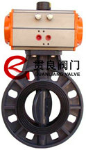 氣動UPVC蝶閥由活塞式氣動執行器和對夾式塑料蝶閥組成。蝶閥采用對夾式結構,閥體和閥板都采用塑料FRPP,UPVC,CPVC,PVDF等制成,重量輕。閥座密封圈采用橡膠材料,密封性好。連接是由兩端的法蘭對夾而成,方便拆卸維修。工作原理也是通過氣動執行器90度的旋轉來帶動閥球的旋轉以達到介質的流通與阻斷。用于調節控制時需要配置電氣閥門定位器。氣動塑料蝶閥有較好的耐酸堿腐蝕性能,多可用于環保,水處理等行業。